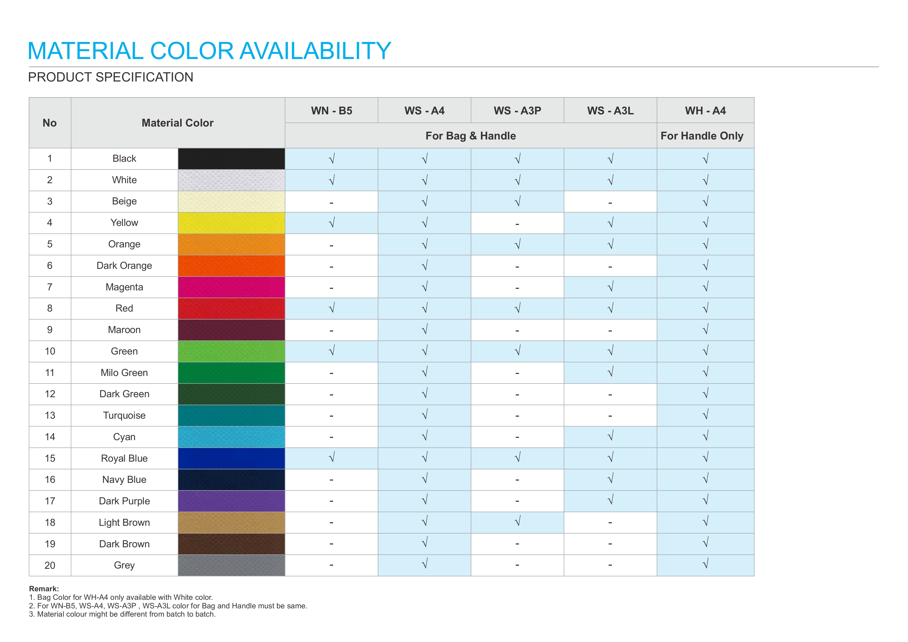 Bag Colour & Handle Colour : Refer to