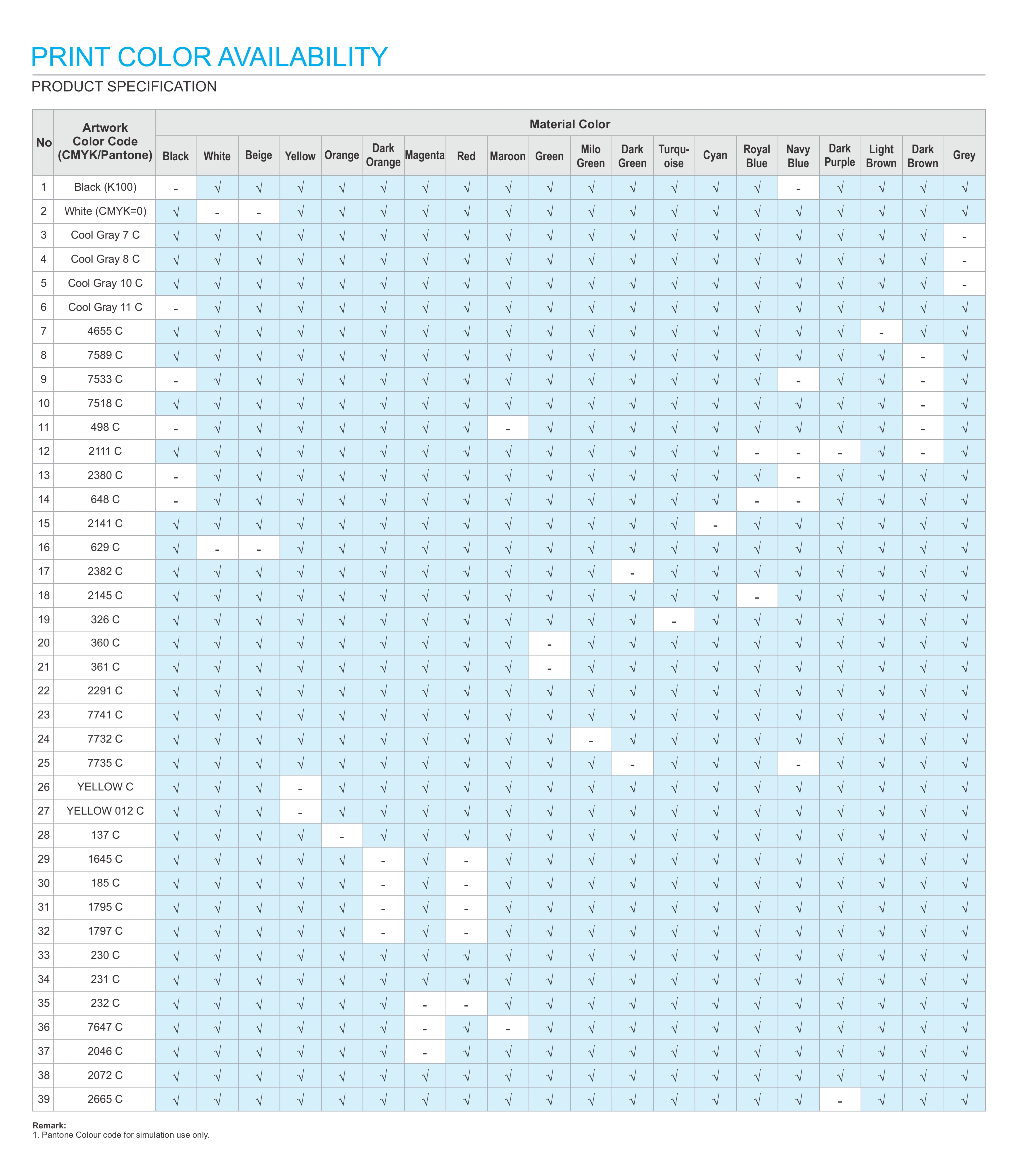 Printing Colour : Refer to